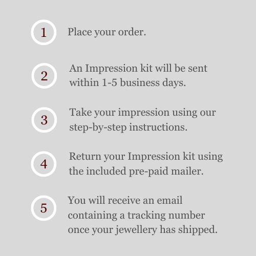 After we have received your returned impression kit, please allow upto 4 weeks for the finished piece.